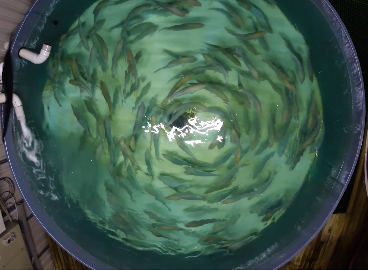 Our land-based recirculating aquaculture system works a lot like an aquarium – just bigger. Up to 99 percent of the water can be recirculated and reused after being filtered and treated to eliminate any impurities.
